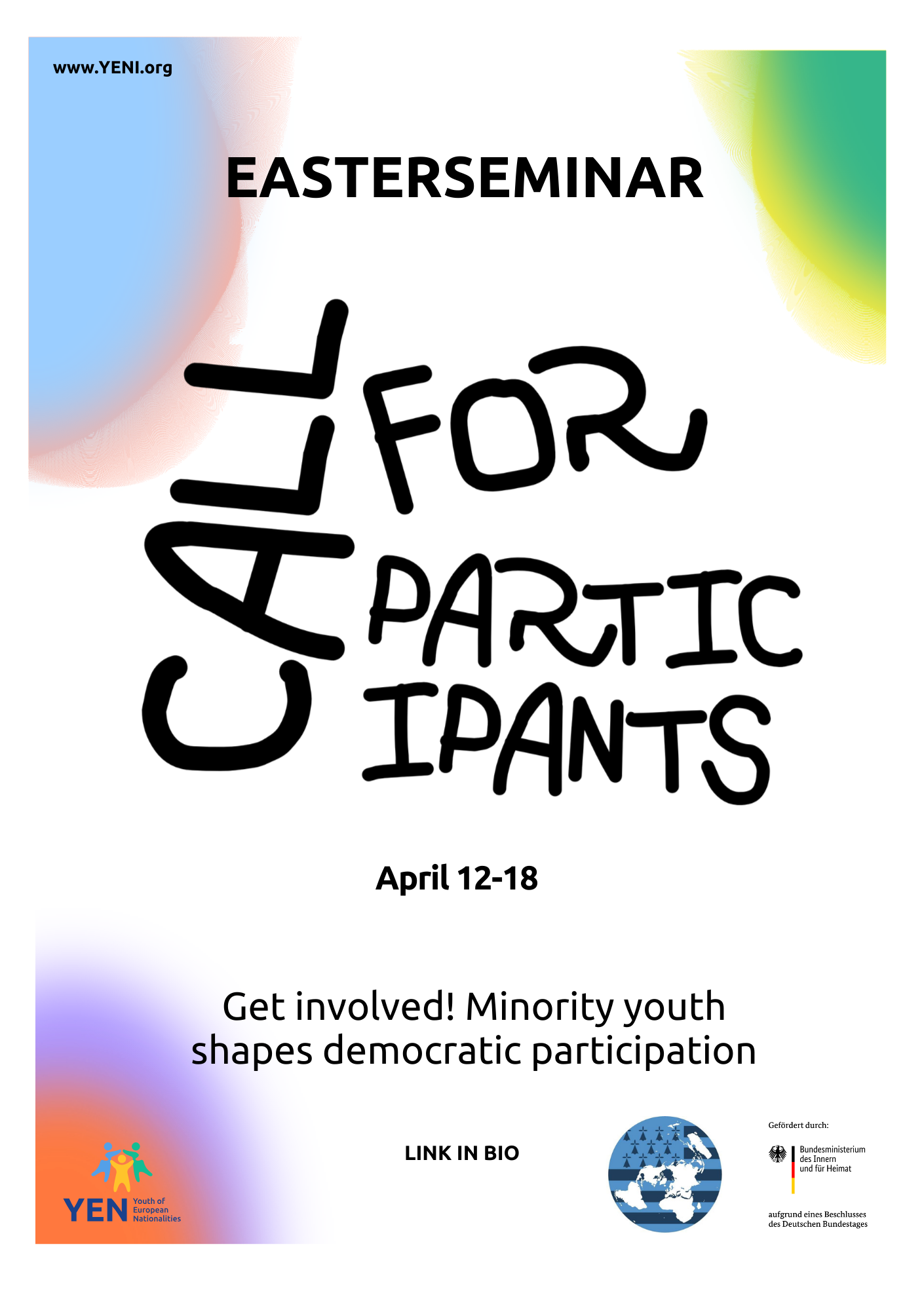 Dla młodych ludzi z mniejszości w wieku od 16 do 30 lat z organizacji członkowskich YEN i gości (o ile są jeszcze wolne miejsca).