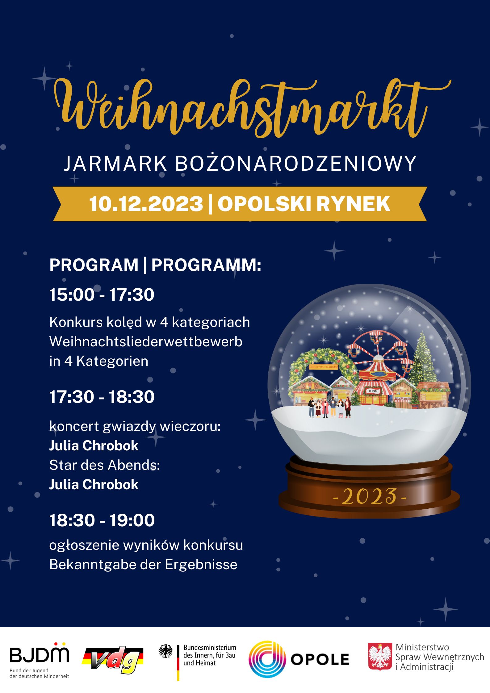Kinder und Jugendliche, die am Gesangswettbewerb teilnehmen möchten, sollten sich über ein Google-Formular (Link: https://forms.gle/rMizWyx57fmWDJ1J8) bewerben und ihr aufgenommenes, gesungenes Lied per WeTransfer an die E-Mail-Adresse archiwumbjdm@gmail.com schicken. Diejenigen, die sich für die nächste Etappe des Wettbewerbs qualifizieren, werden von der Jury ausgewählt und am 10.12.2023 auf die Bühne des Opoler Marktplatzes eingeladen, um das zuvor eingereichte Repertoire persönlich live vorzutragen. Bewerbungen und Aufnahmen werden bis zum 29.11.2023 angenommen.