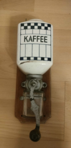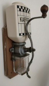 Przez lata korbka obracała się w rytm poranków. W niedziele mieliła prawdziwą, drogą kawę kolonialną, której zapach niósł się po klatce schodowej. W trudniejszych czasach wojny i tuż po niej, żarna kruszyły już tylko palony jęczmień i cykorię. Pęknięcia na korbce i wytarcia na drewnie to ślady tysięcy obrotów – nerwowych w czasie kryzysu i powolnych, leniwych w niedzielne popołudnia. Młynek przetrwał zmianę granic, zmianę właścicieli i zmianę języka, w którym mówiło się w tej kuchni, ale napis »KAFFEE« pozostał niemym świadkiem dawnego świata.”