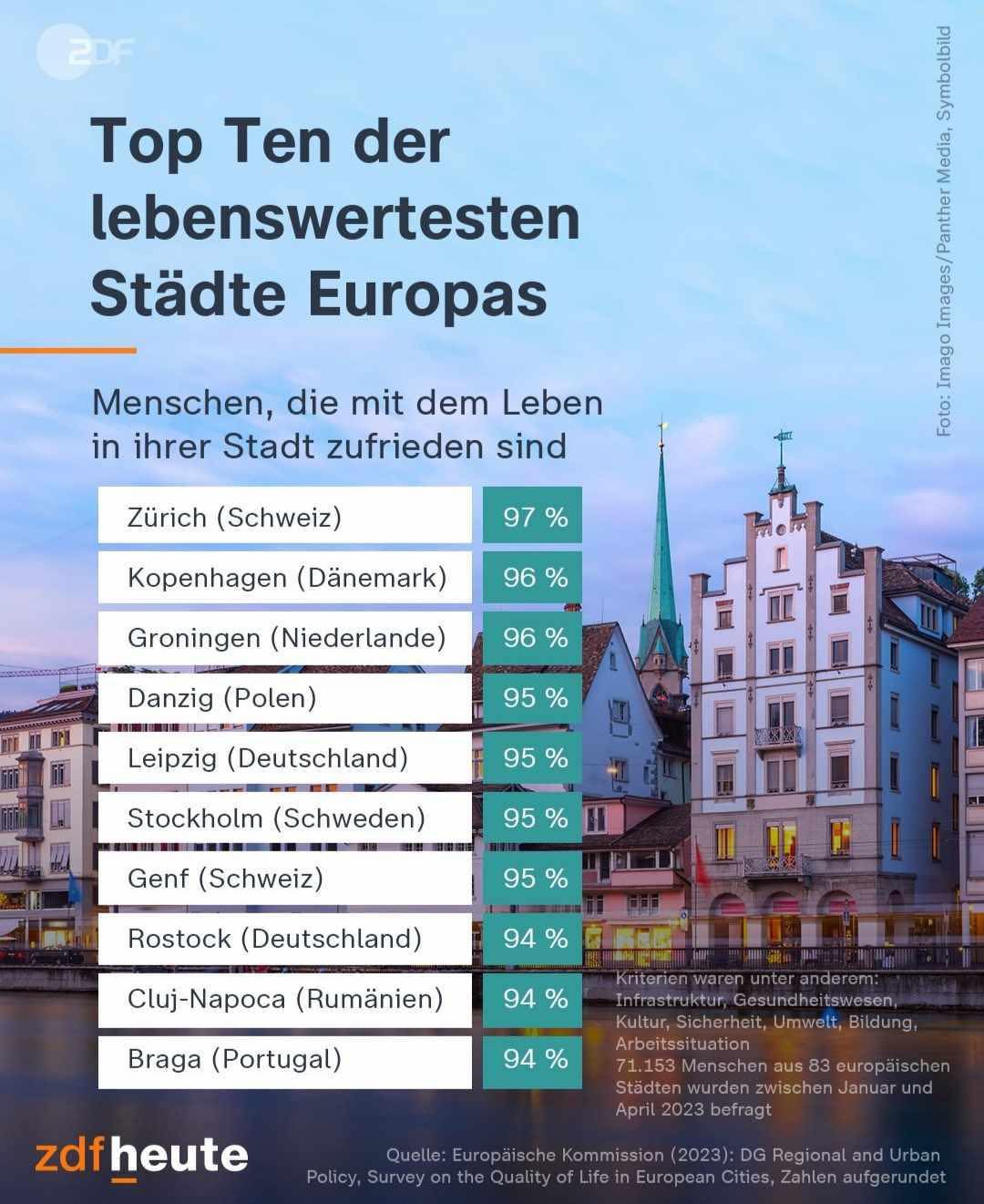 Die ersten drei Plätze ohne Überraschungen – Zürich, Kopenhagen und das malerische niederländische Groningen.